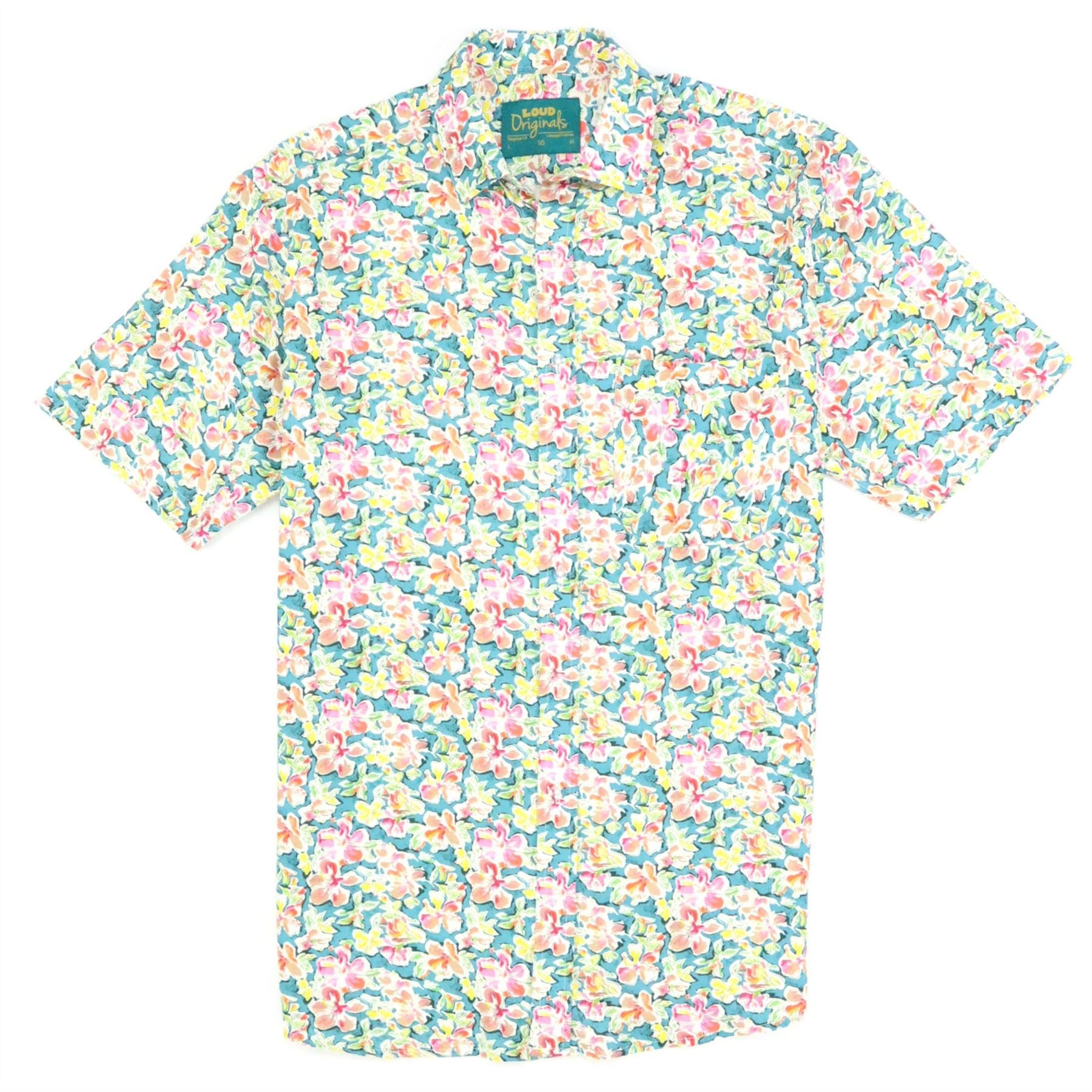 Men's regular fit casual dress shirt with short sleeves, classic collar, chest pocket and curved hem.
