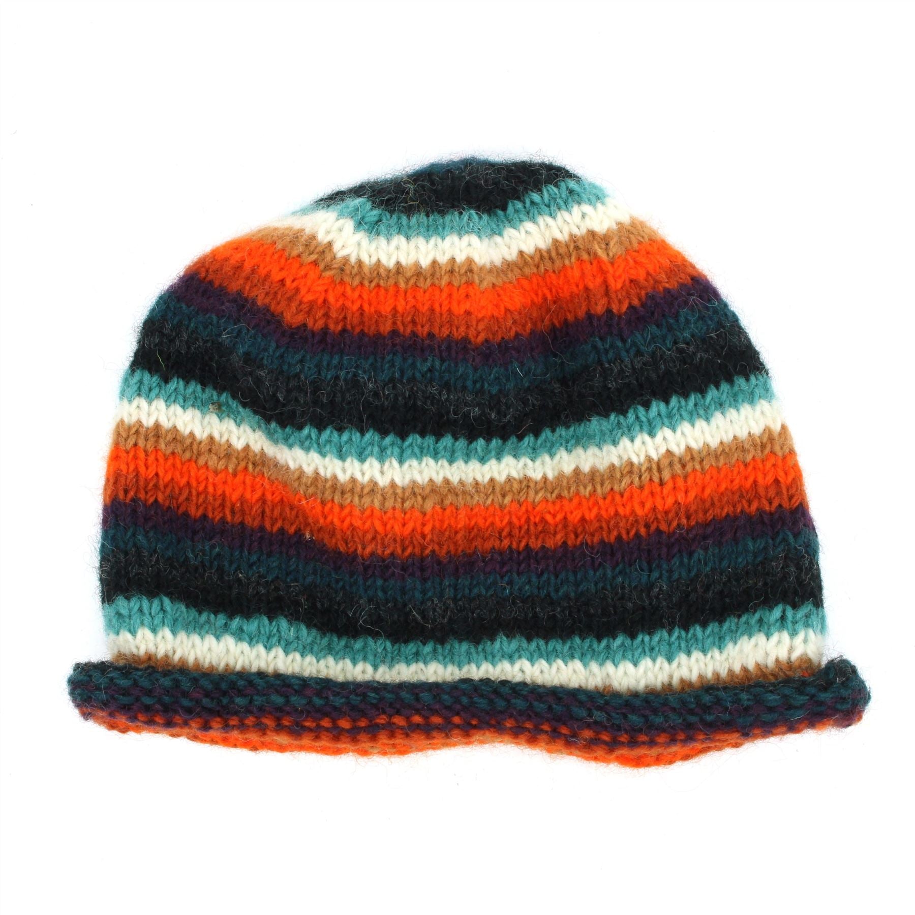 Hand Knitted Wool Beanie Hat - Stripe Anu