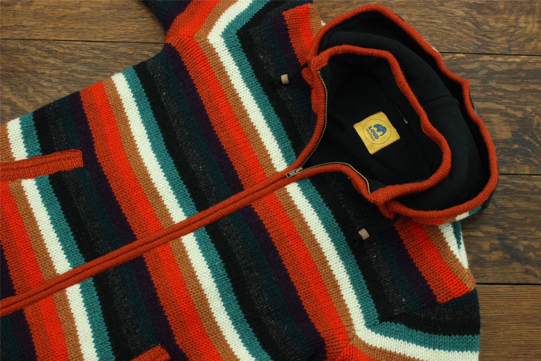 Hand Knitted Wool Hooded Jacket Cardigan - Stripe Anu