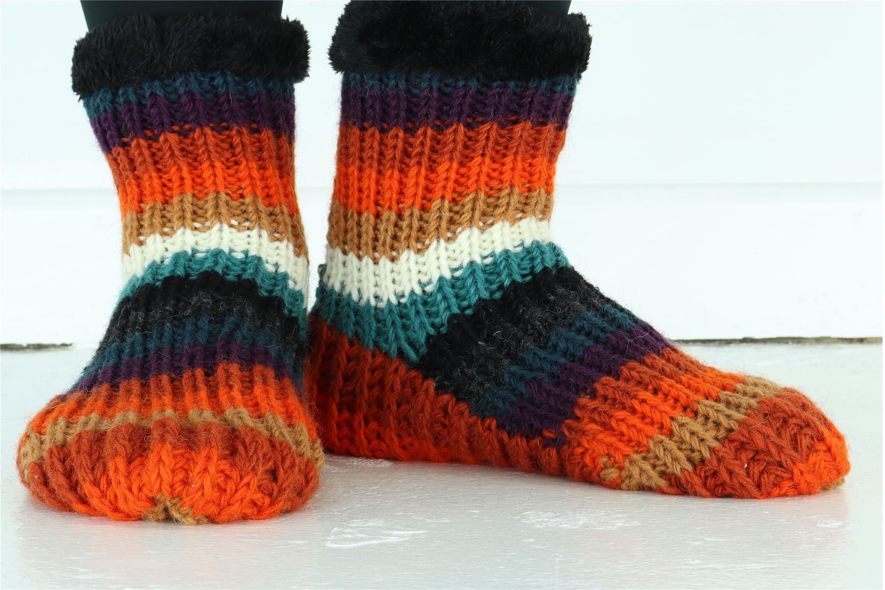 Indulge in the pure comfort of these handcrafted slipper socks, featuring a delightful combination of hand-knitted charm and a luxuriously plush sherpa fleece lining. Designed for ultimate relaxation, these slipper socks are your ideal choice for lounging around the house.