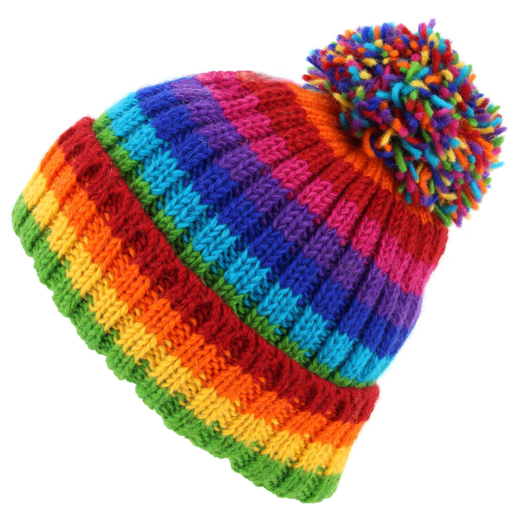 Hand knitted wool beanie hat with a warm fleece band lining and a multi-coloured bobble. This is a regular fitting beanie hat, not too big, not too small. A perfect winter bobble, that will keep you nice and cosy even on the coldest days.