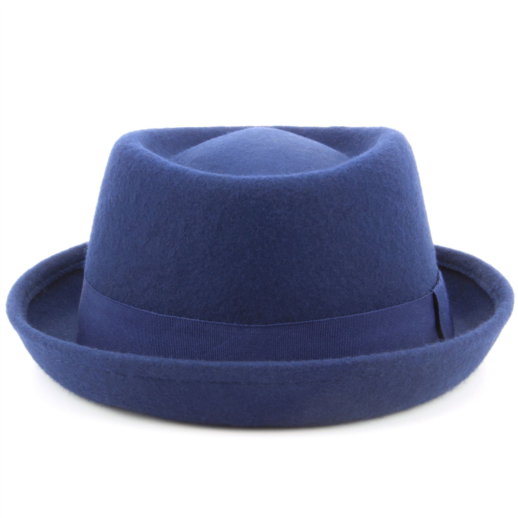 Excellent quality pork pie hat with a thick grosgrain band. The pork pie hat made its mark on jazz, blues and ska musicans in the mid to late 20th century and the style has seen a resurgence in popularity thanks to the hit TV series Breaking Bad. Stylish hat from the Hawkins Collection.