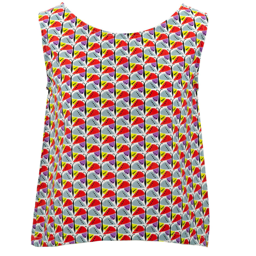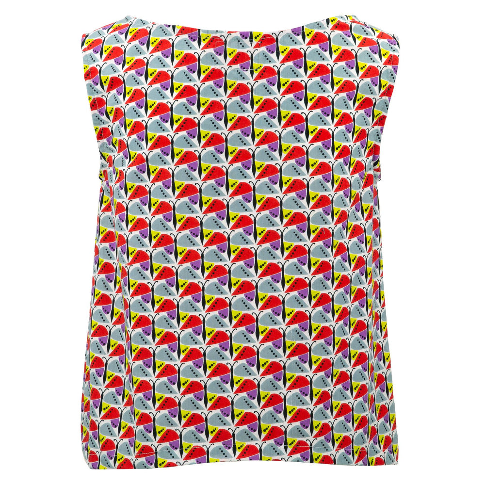 Longer at the back, this top is sleeveless and looks equally good with jeans, trousers, shorts or a skirt. A versatile style in a varirty of exciting prints.
