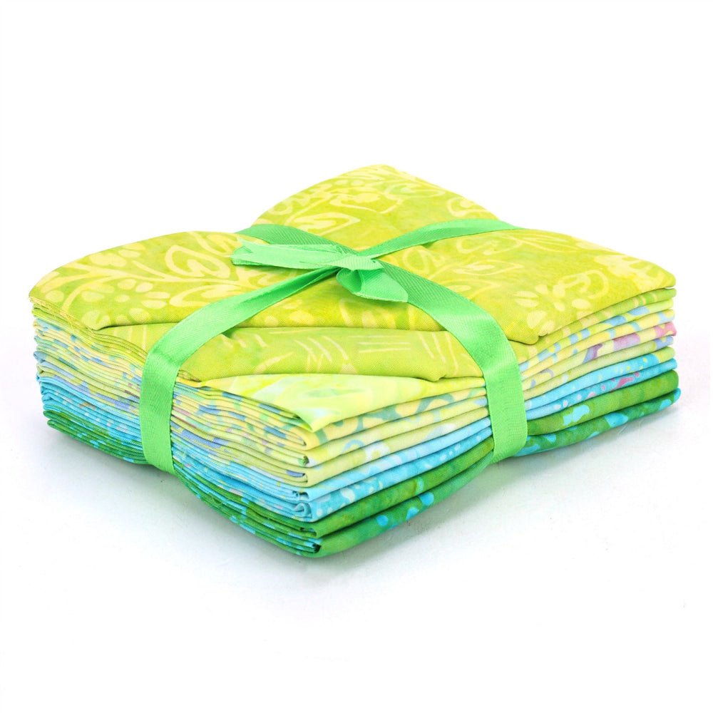 10 pieces of 19" x 20" (approx.) cotton Batik fabric in a mix of prints and colours all bundled into a 'Fat Quarter'.