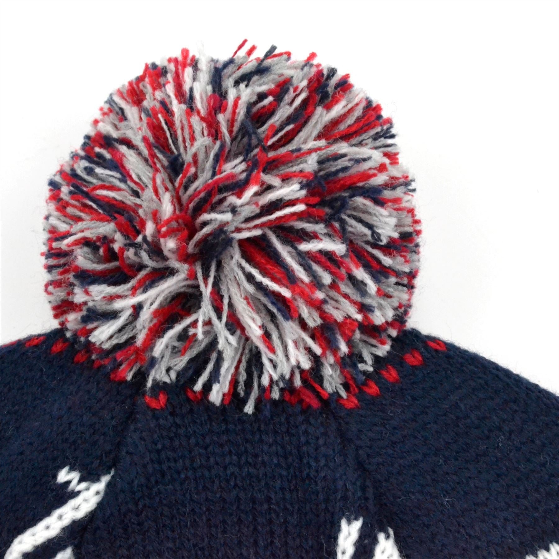 Fine knit beanie bobble hat with reindeer design - Blue & red