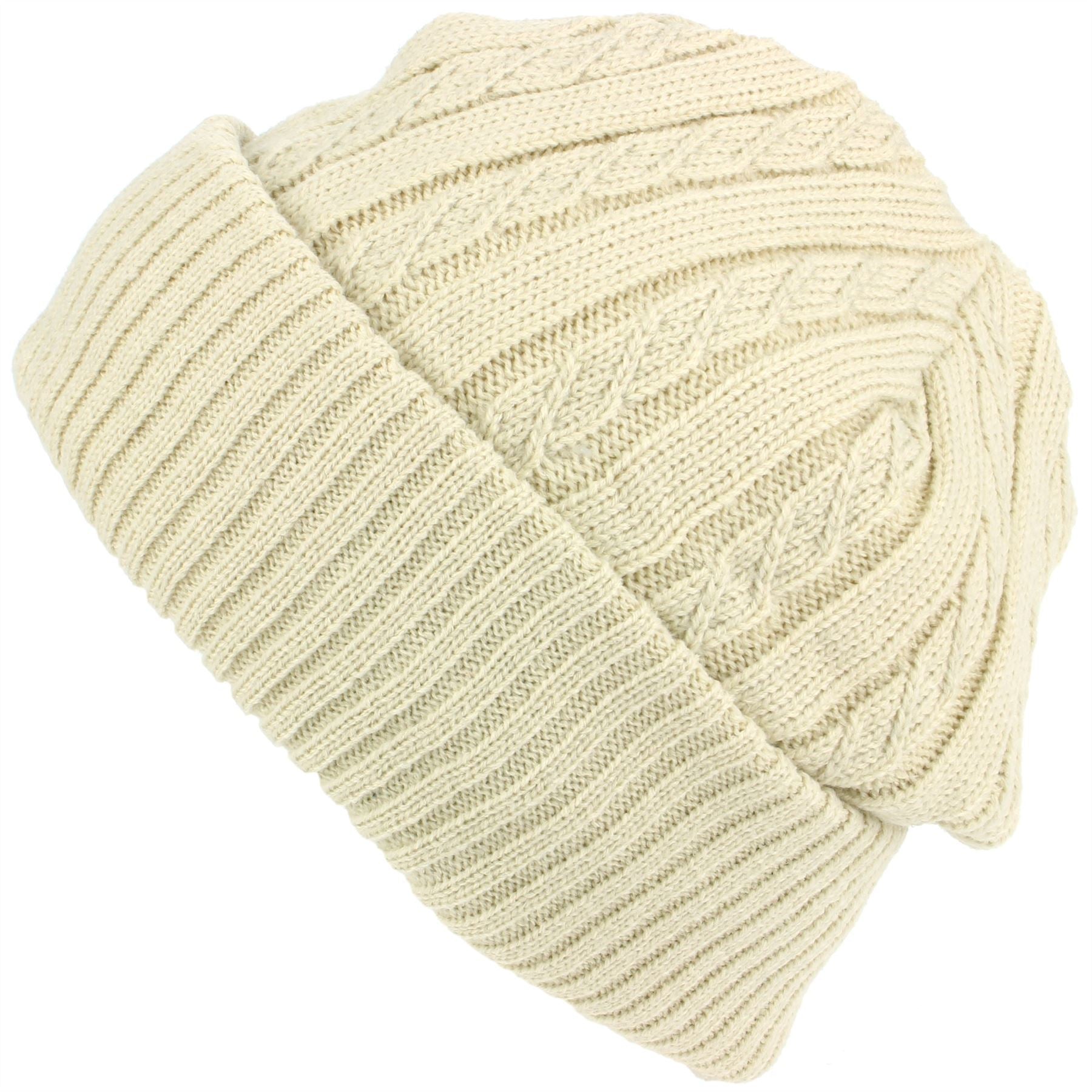 Fine knit beanie hat with a ribbed turn-up and a super soft acrylic fleece lining.