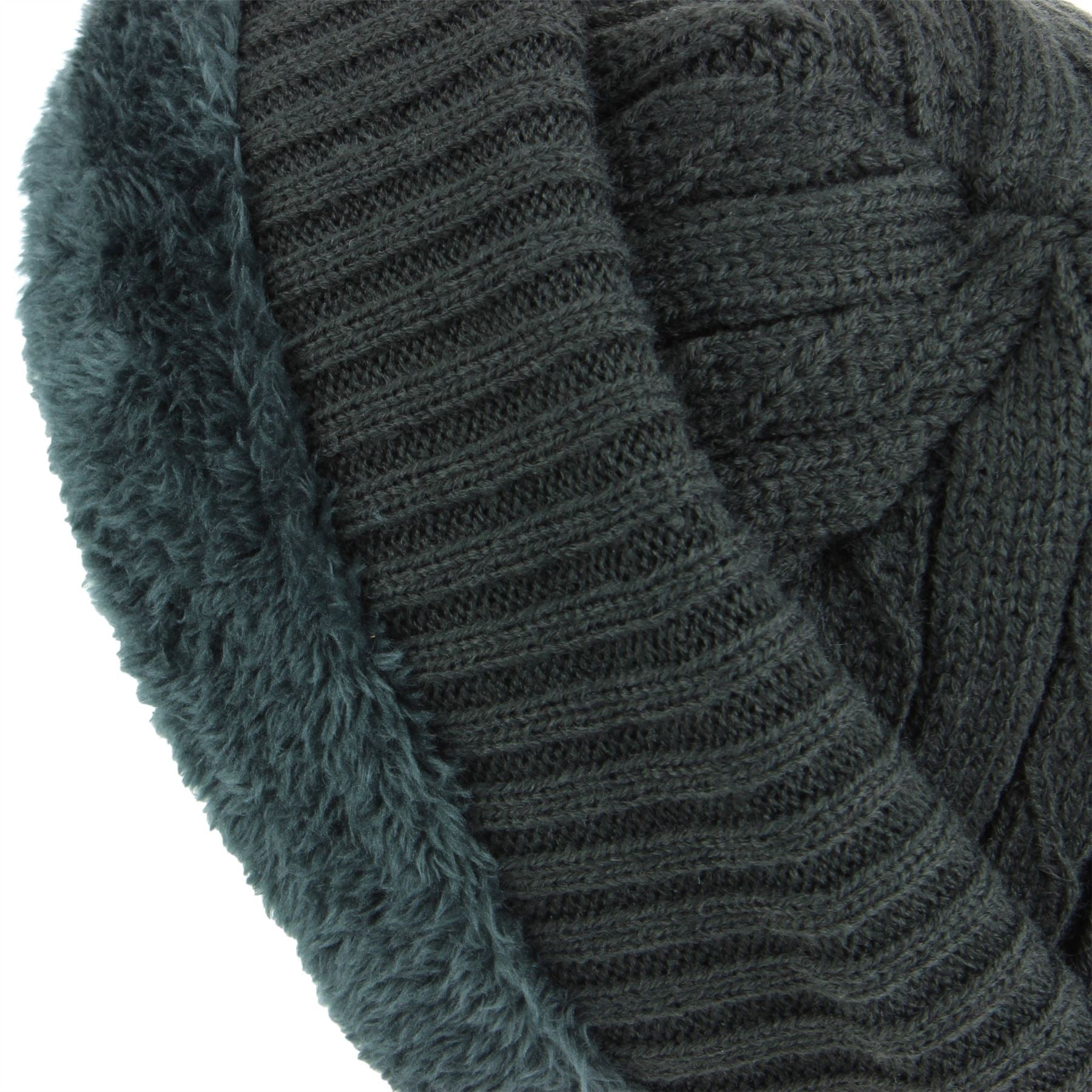 Fine knit beanie hat with a ribbed turn-up and a super soft acrylic fleece lining.