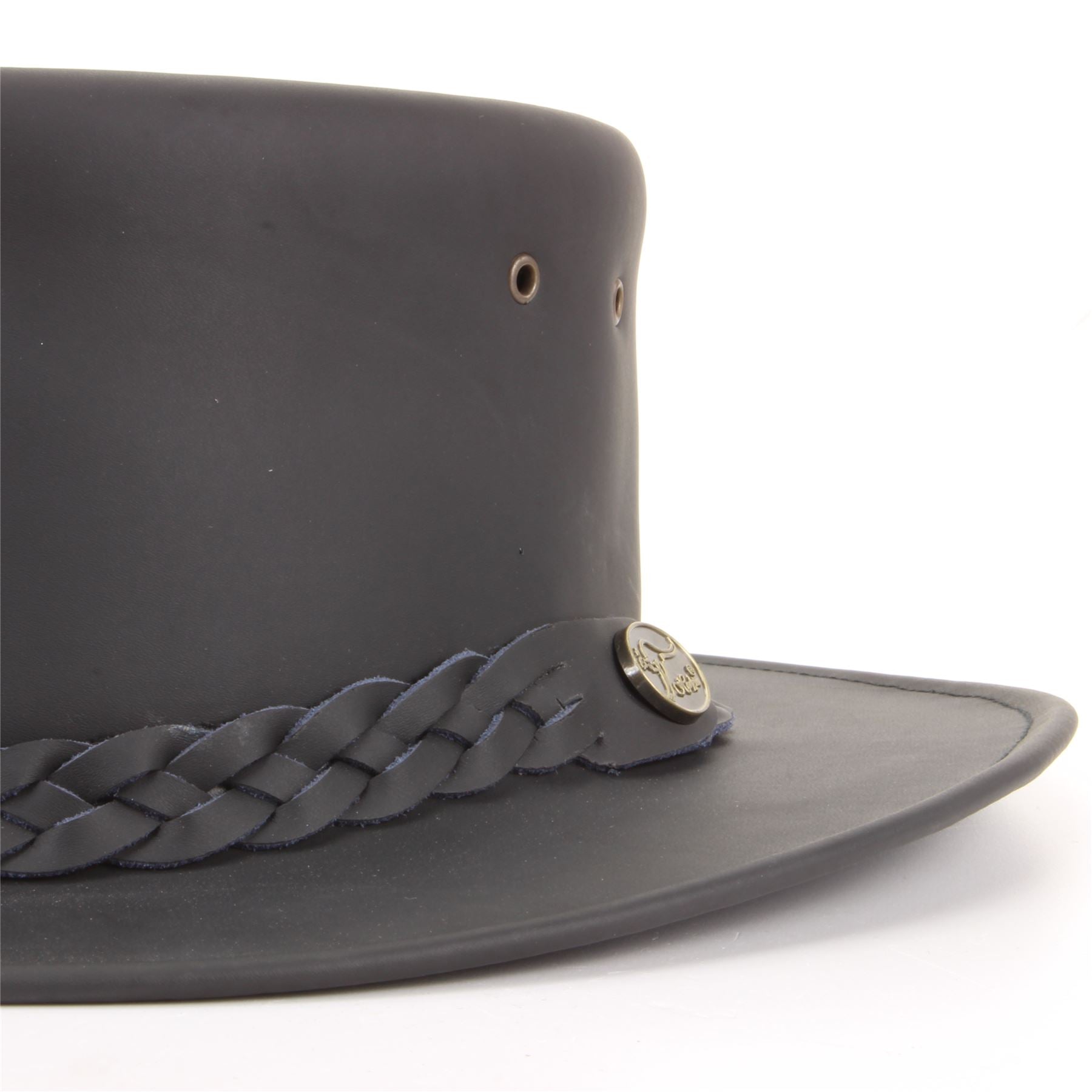 Australian bush hat made from the highest quality genuine leather with a soft matte black finish.