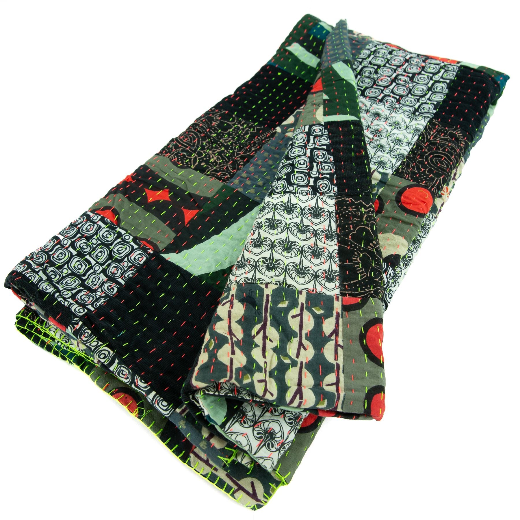Handmade Patchwork Batik Printed Throw - Black Mix