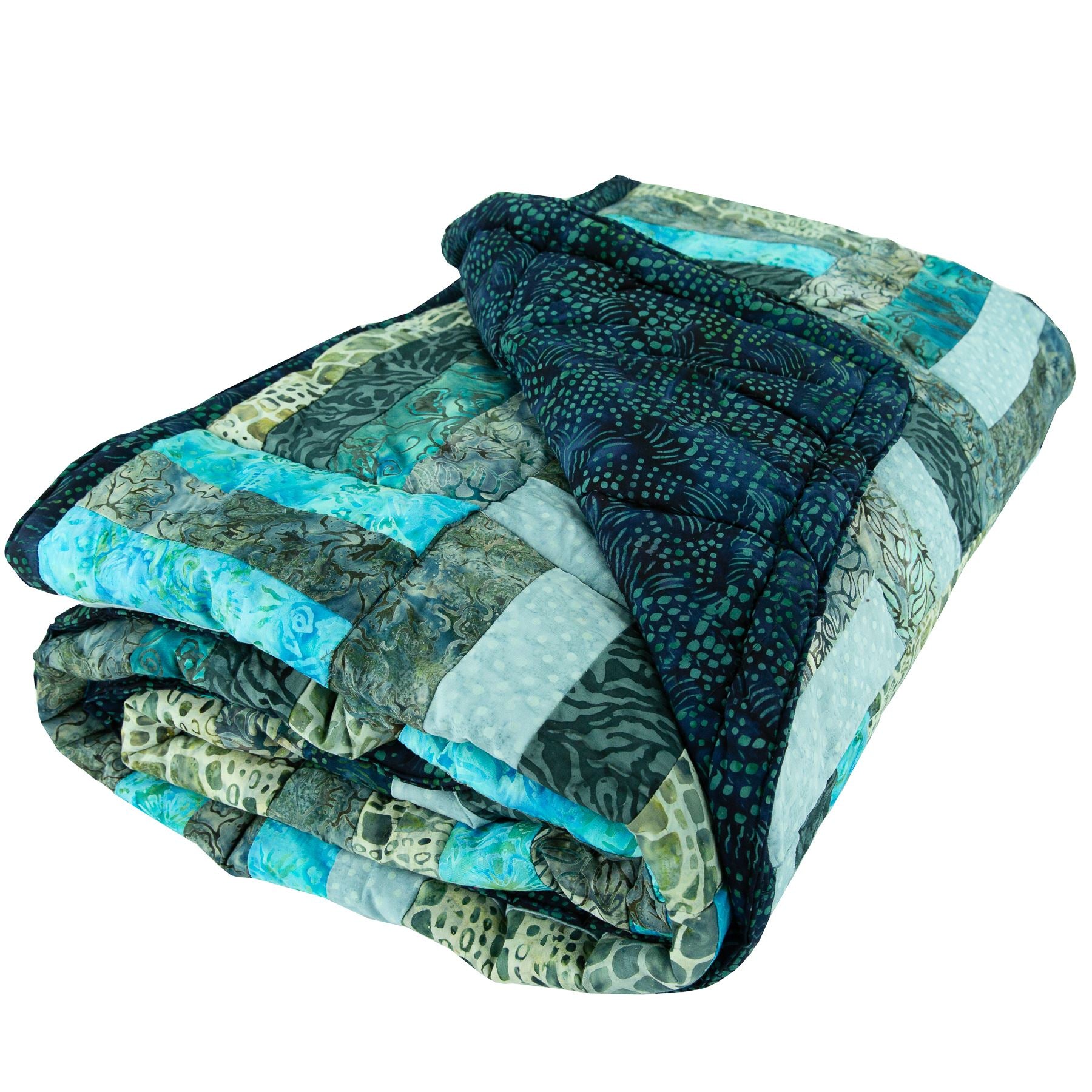 Handmade Quilted Patchwork Batik Printed Bedspread - Ocean Blue