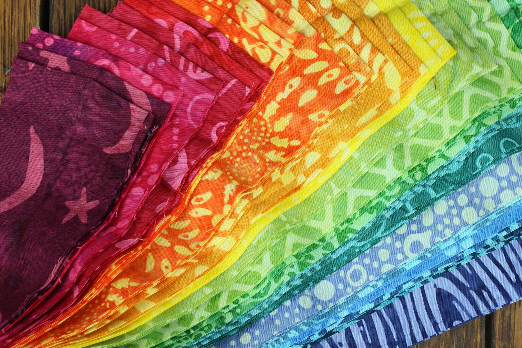 40 strips of 2.5" x 37" (approx.) cotton Batik fabric in a mix of prints and colours all bundled into an attractive 'Jelly Roll'.