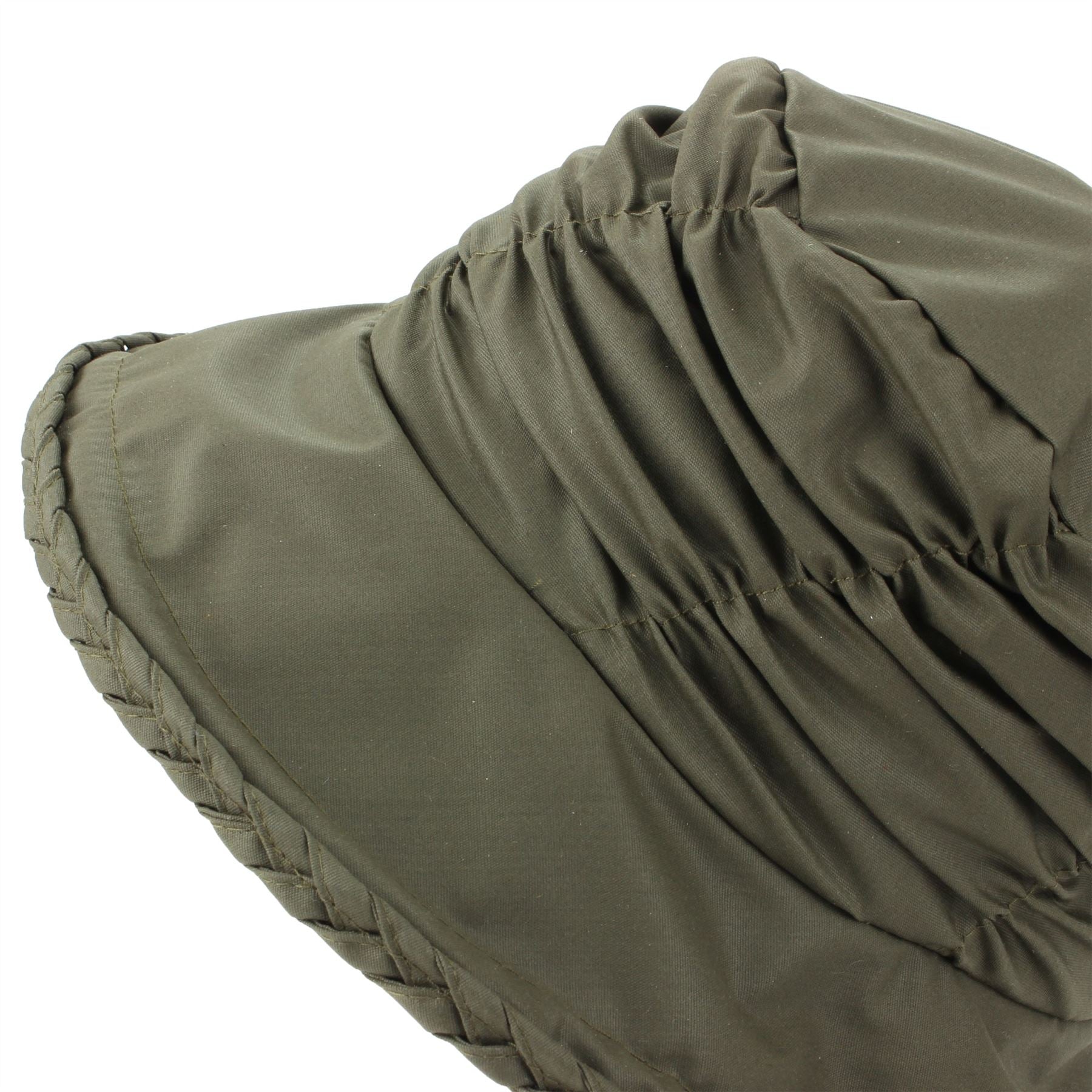 Ladies Water Resistant Wax Cloche Hat with Ruched Crown and Tartan Check Lining - Green