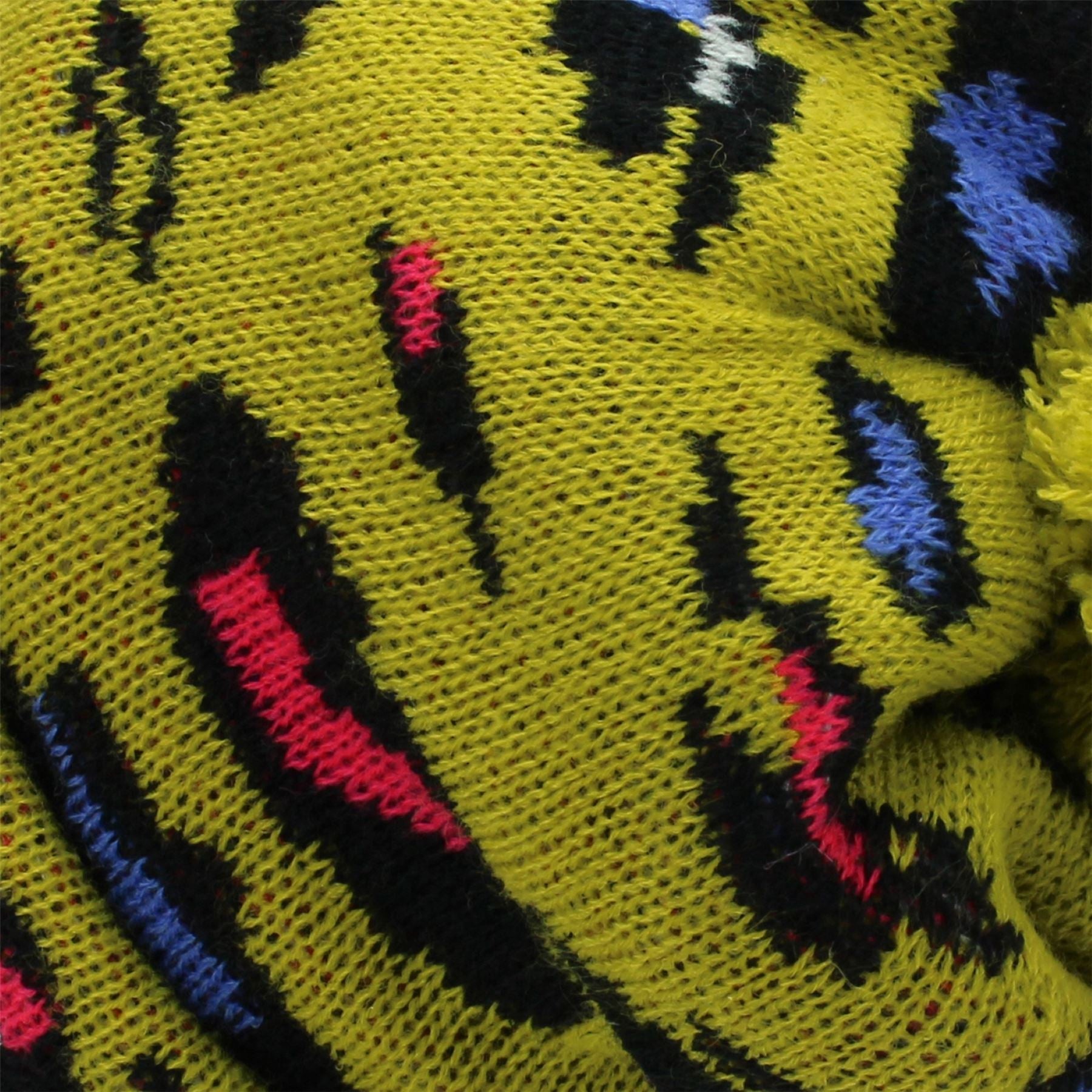 Leopard Print Beanie Hat with Matching Colour Bobble - Mustard