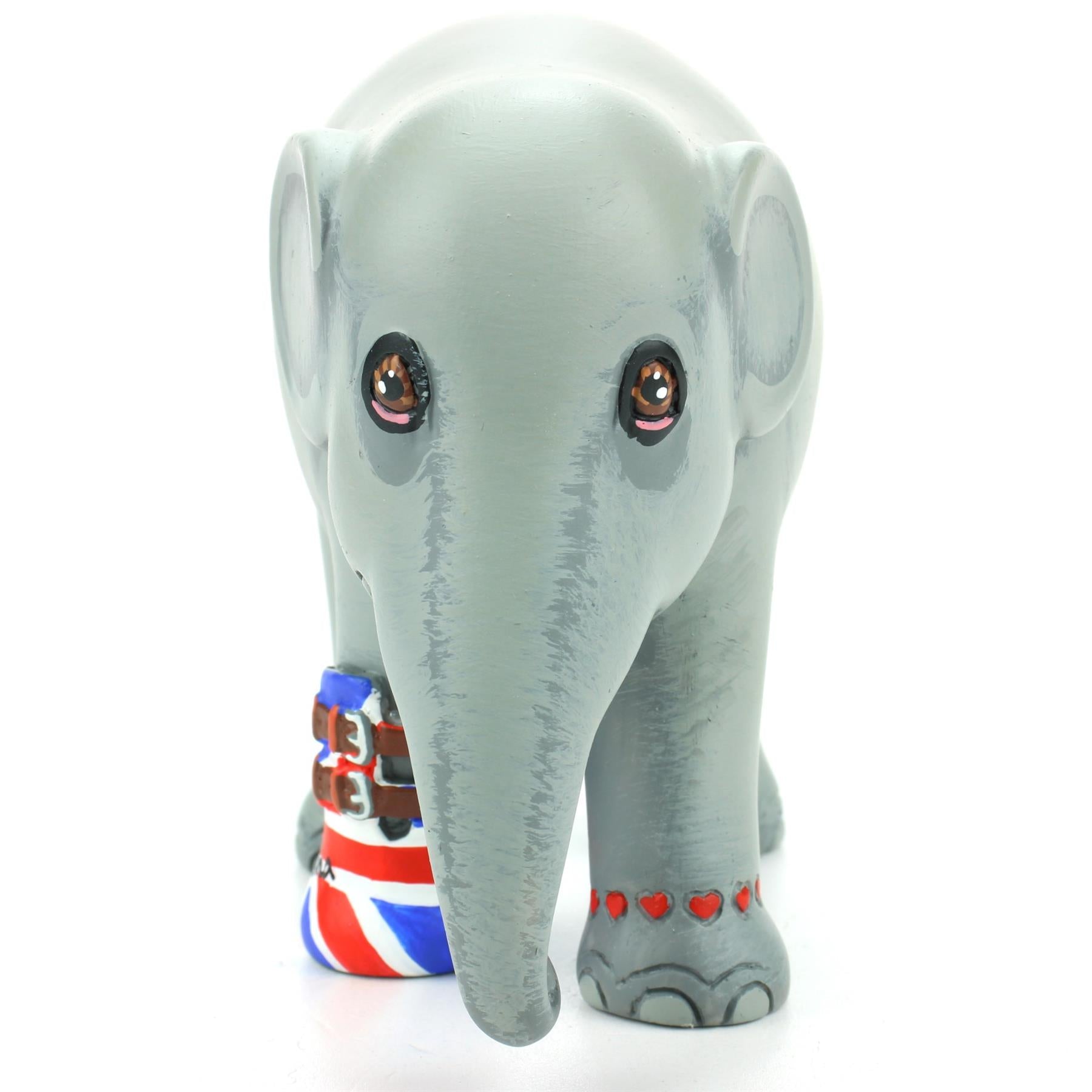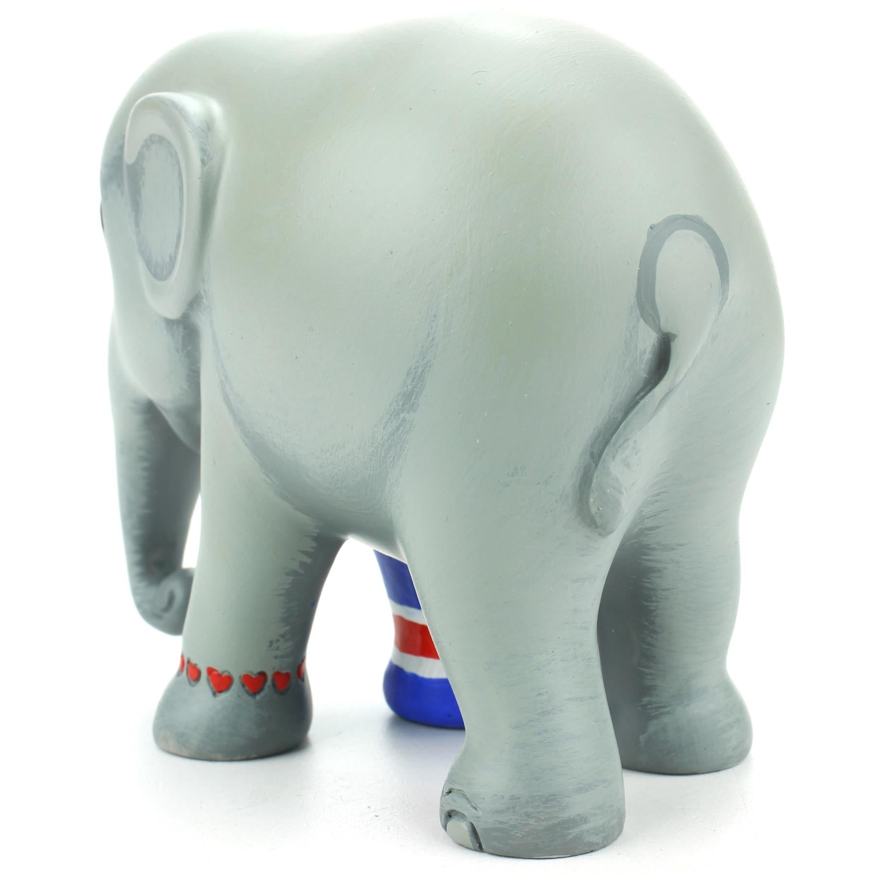 Individually hand painted Elephant Parade replica 'We Love Mosha UK' elephant statuette.
