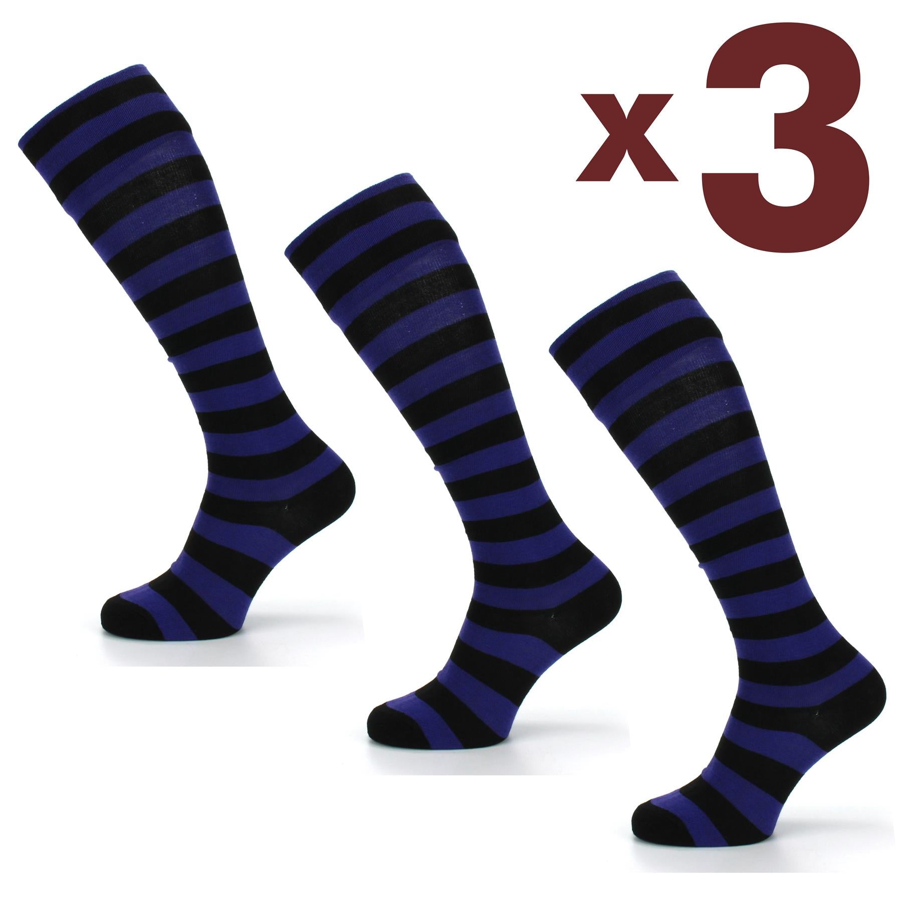 Long stripy cotton socks available in various colours and sets. Fits all the way over the knee, great for wearing with welly boots or for fancy dress.