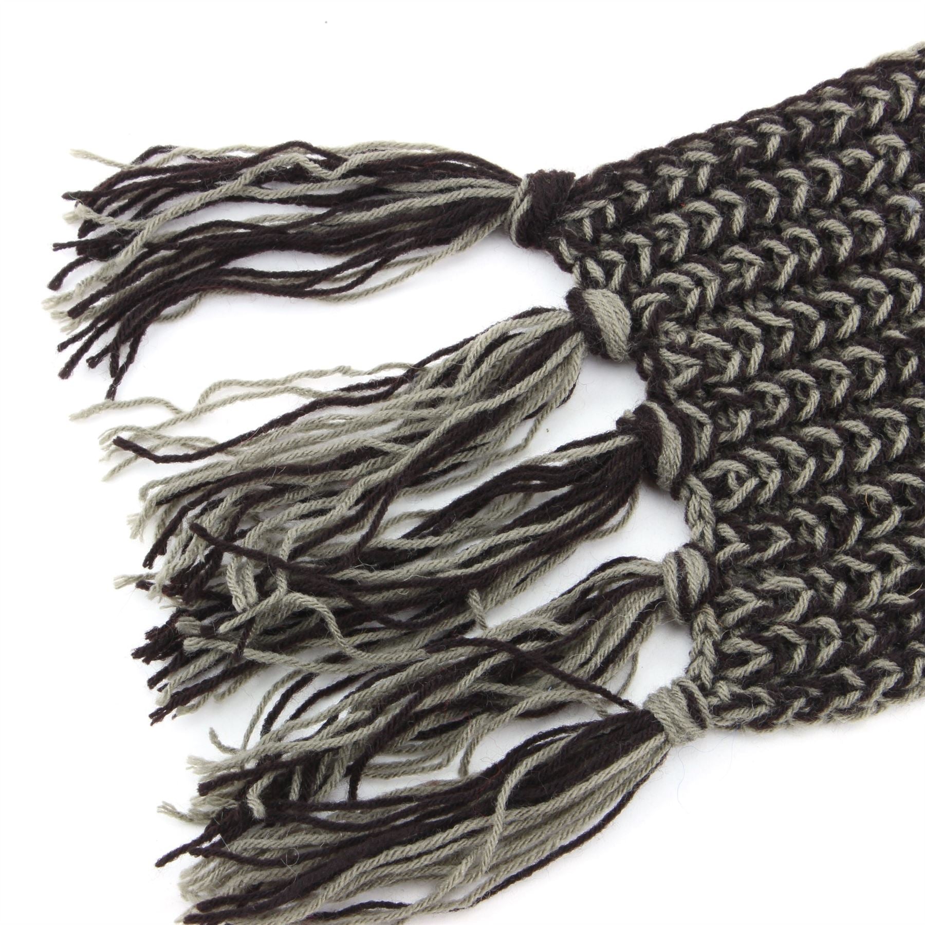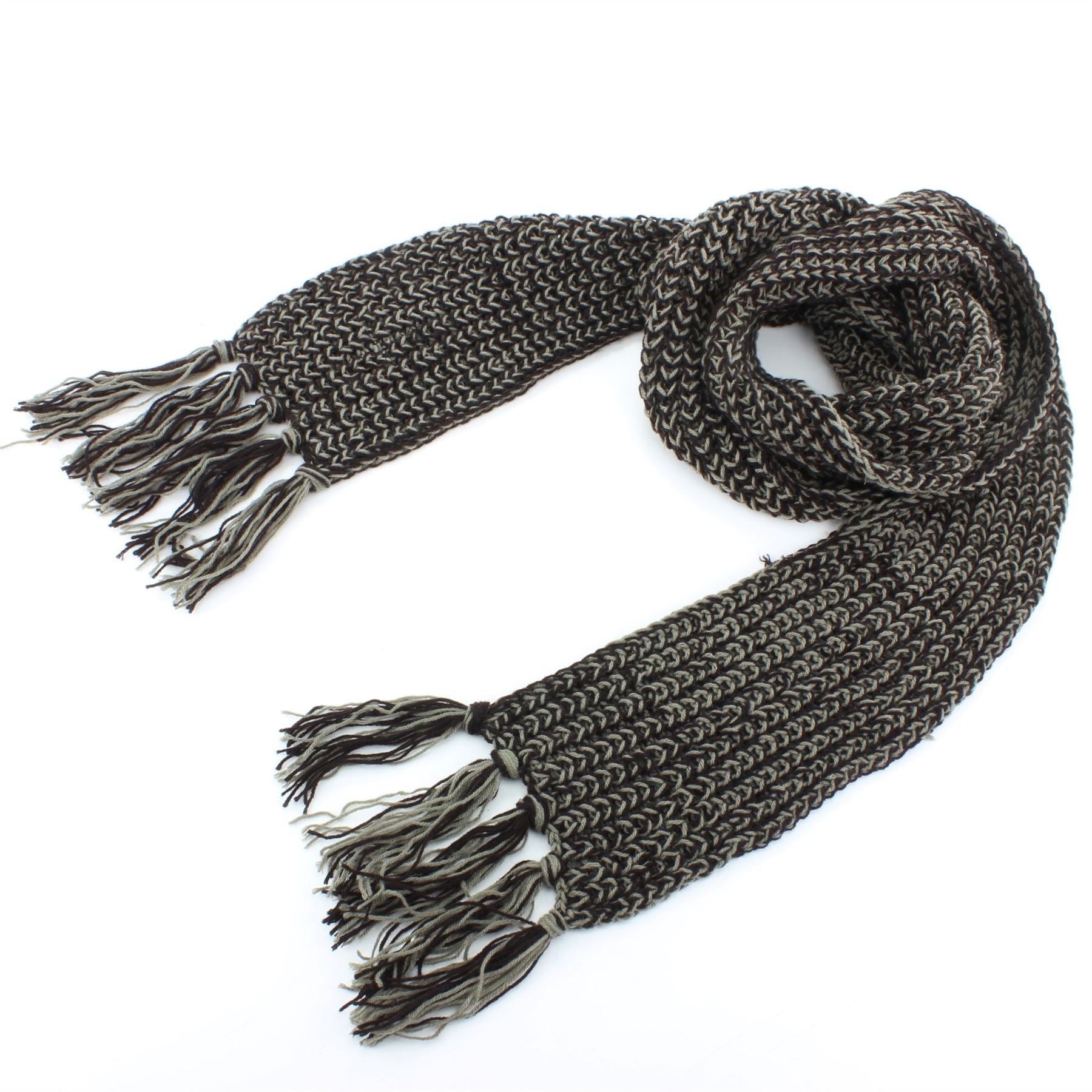Long Narrow Acrylic Wool Knit Scarf - Black & Grey