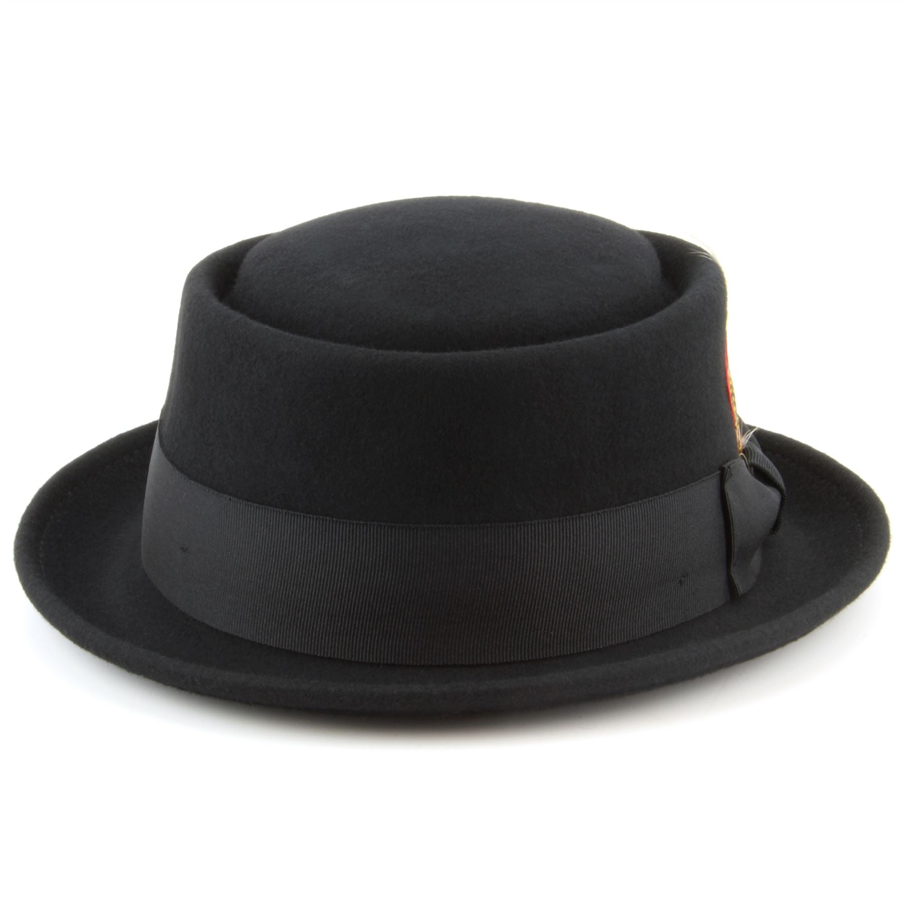 Unisex Black Porkpie hat made from a high quality, smooth wool felt by Maz Accessories. Designed in England as a crushable hat. Sponge clean only. The pork pie hat made its mark on jazz, blues and ska musicans in the mid to late 20th century and recently found its way back into popular culture via the hit TV series Breaking Bad as Heisenberg's hat of choice.