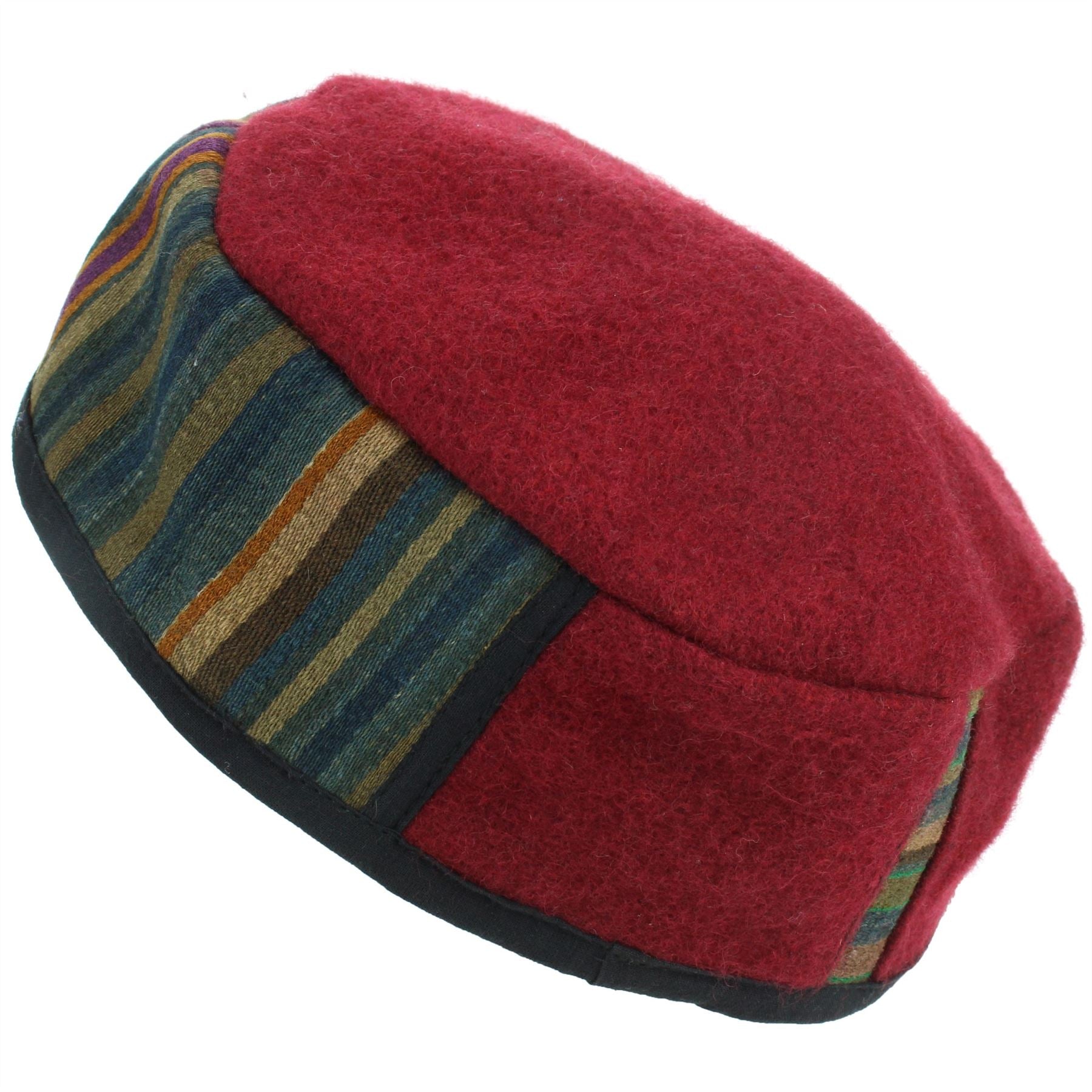 Handmade flat top wool smoking hat with a patterned side. Pattern on the side may vary.