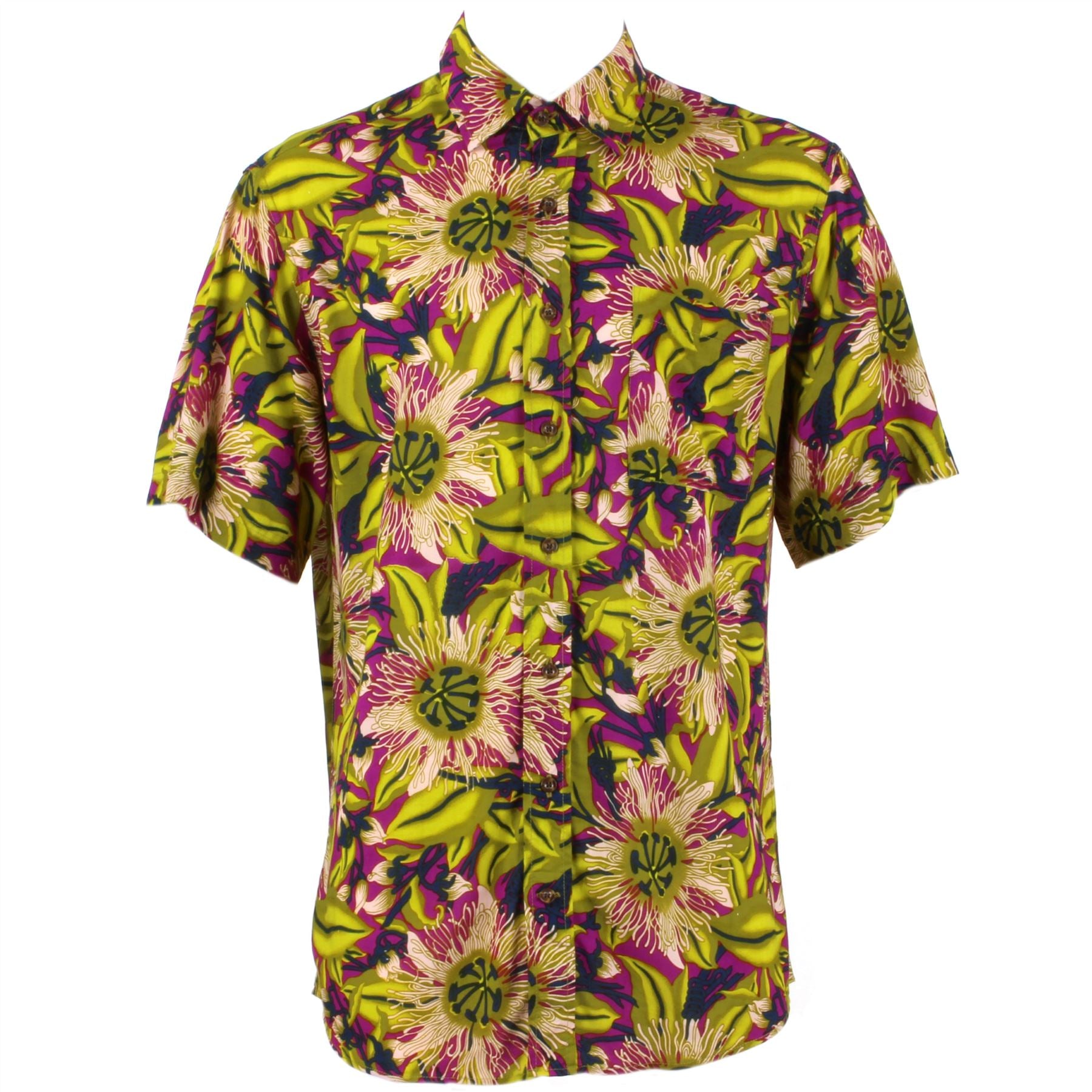 Green & Purple Psychedelic Floral shirt with short sleeves, classic collar, chest pocket and curved hem.