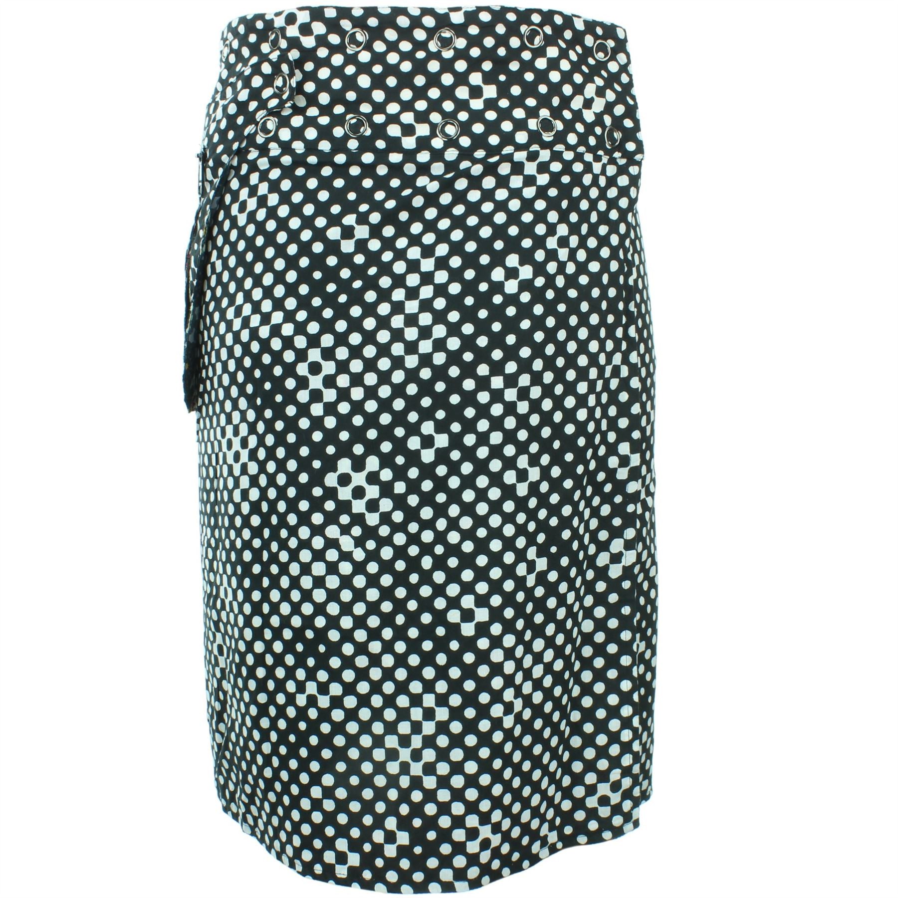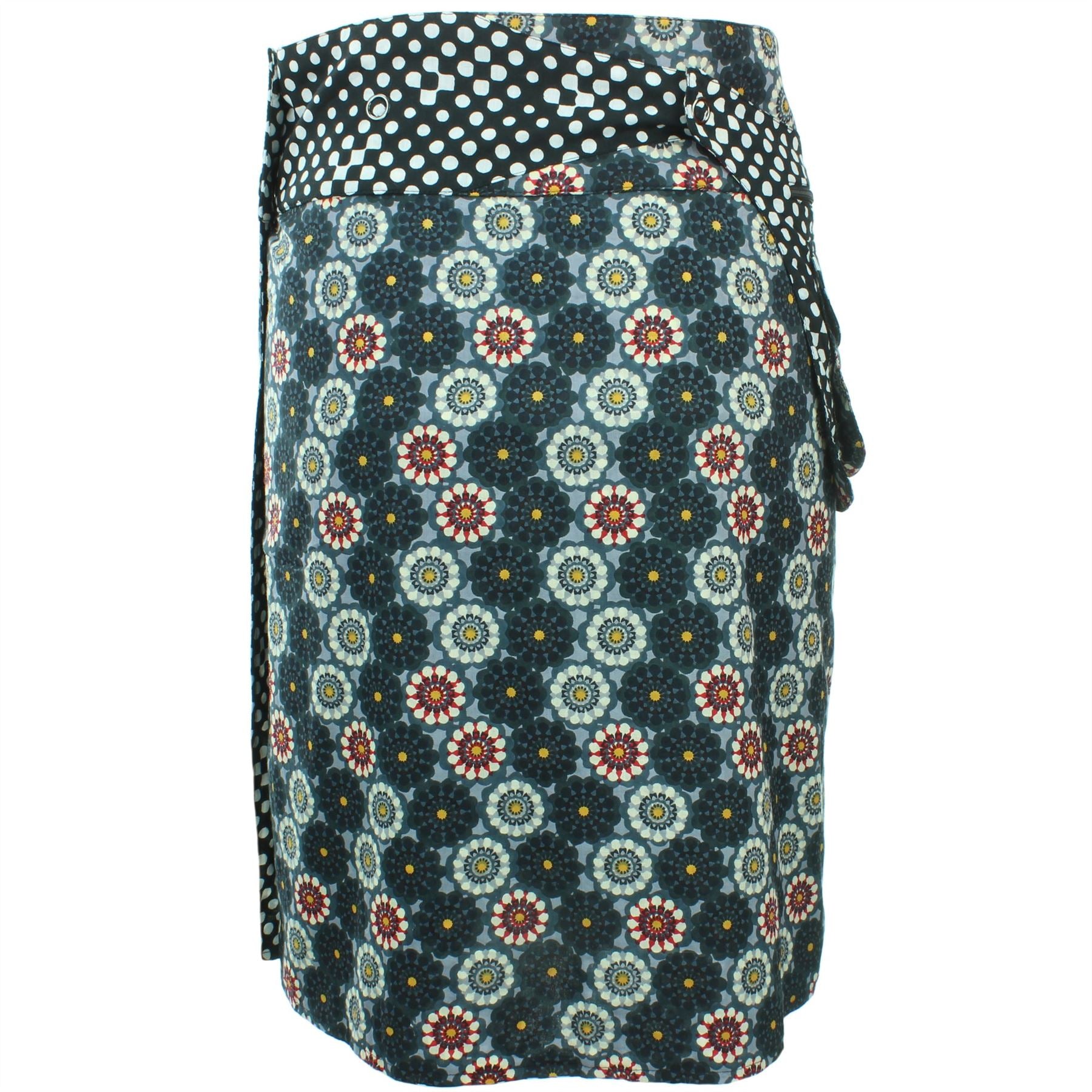 Reversible Popper Wrap Knee Length Skirt - Kaleidoscope / Mono Dots