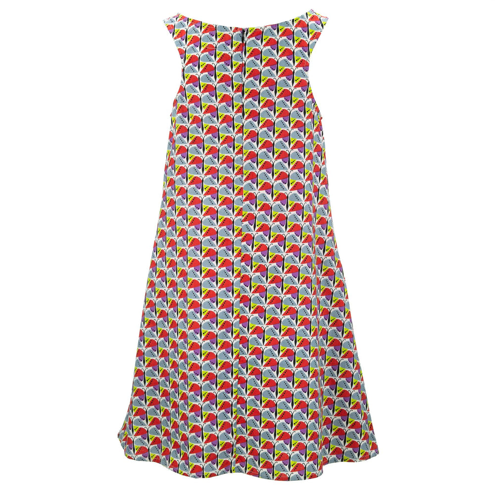 Beautiful, simple and versatile - fitted around the neck and arms, the dress flares out to be full around the hem making it a great fit for a wide range of body shapes. A modern summer style that can be dressed up or down, accessorised or worn very simply as is.