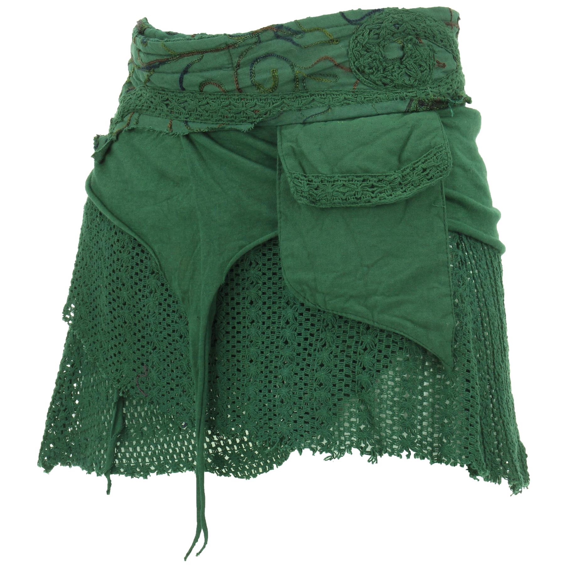 Layered wrap mini skirt with hook and loop fastening round the waist for easy size adjustment.