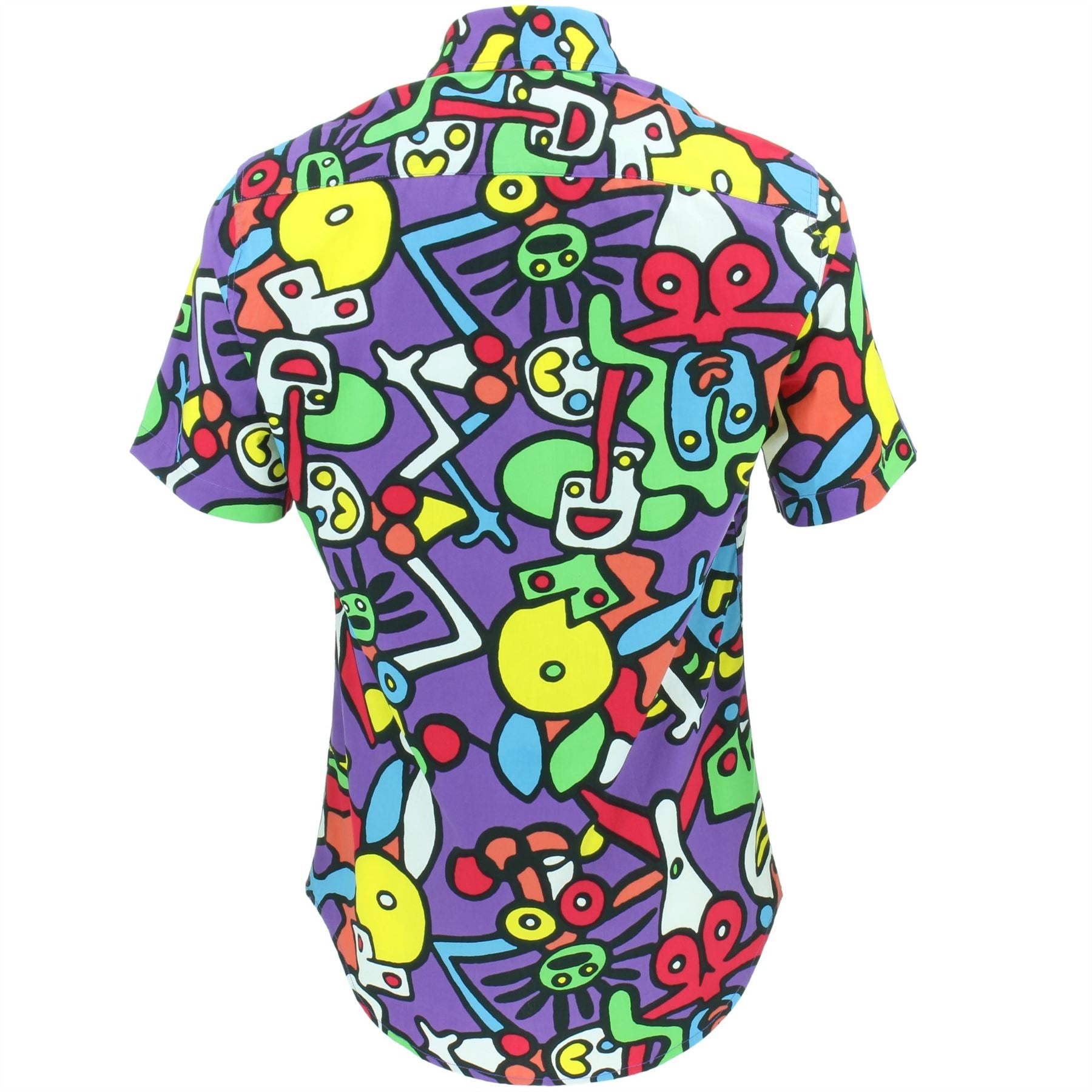 Slim Fit Short Sleeve Cotton Shirt - Tiffy Print - Purple
