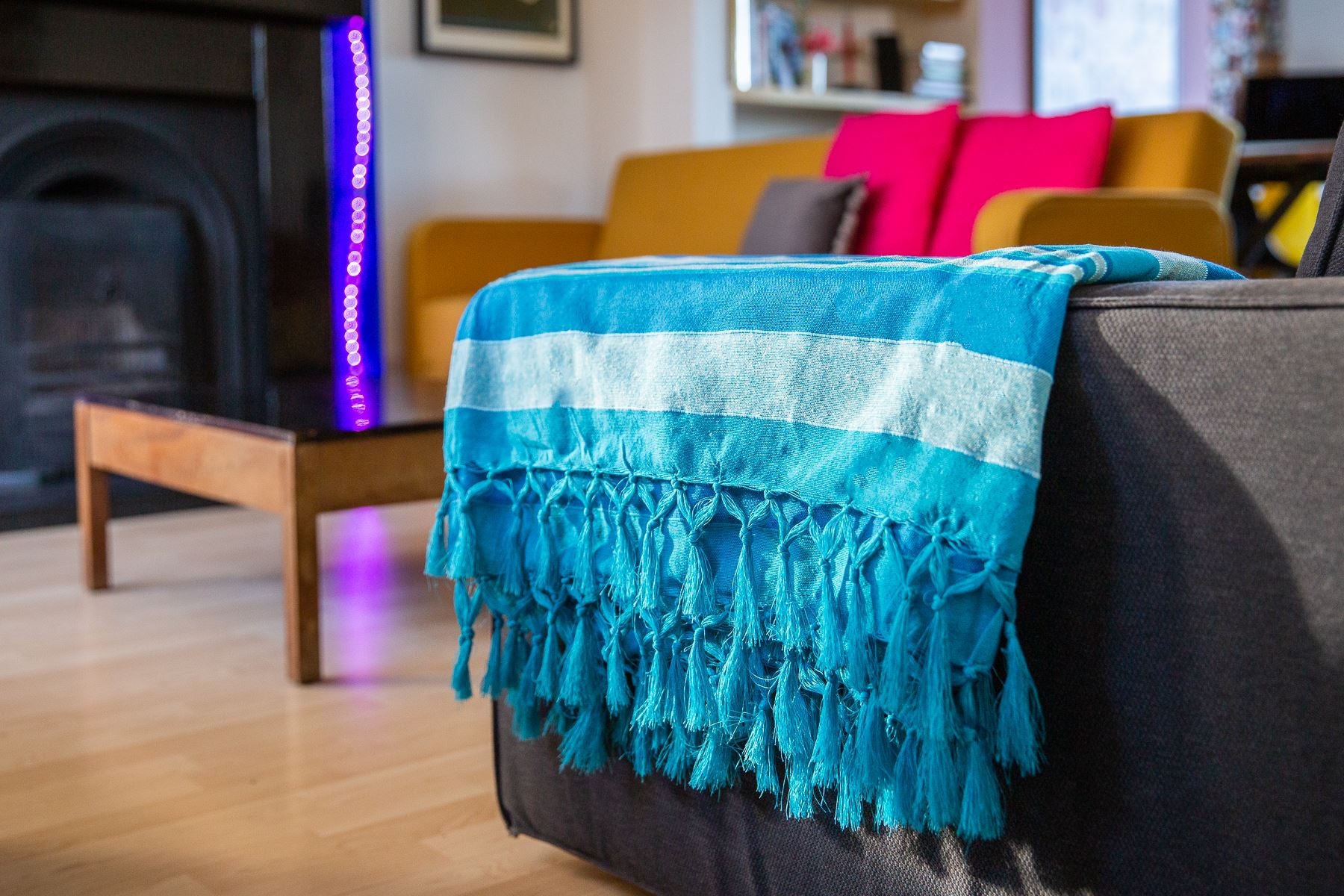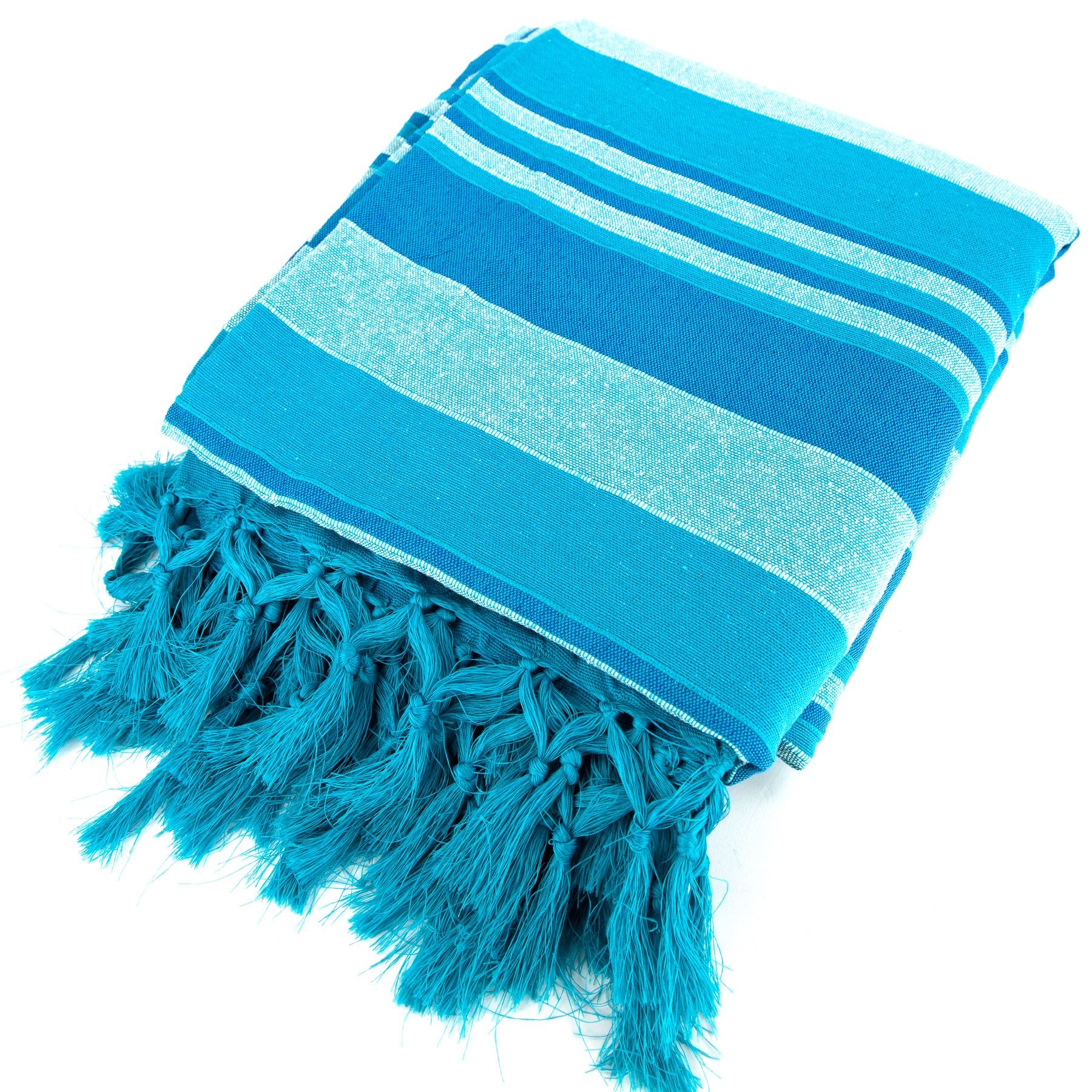 Large cotton stripe blanket with tassel edging, great around the home as a sofa or a bed cover.